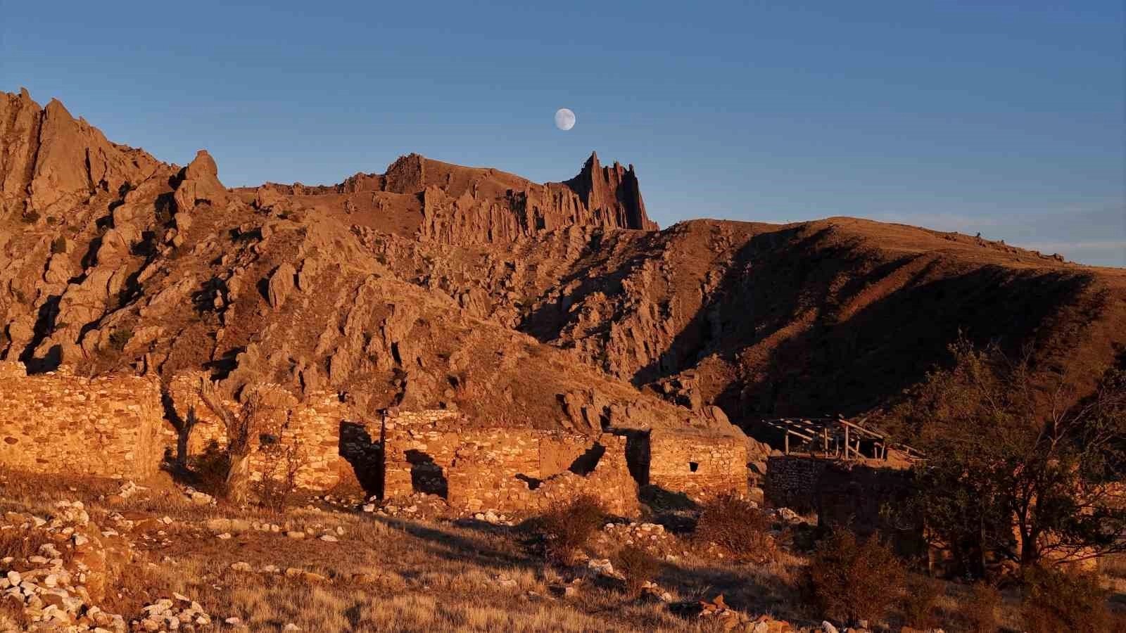 Sivas’ın merkeze bağlı Emirhan köyü, 400 yıllık tarihinin yanı sıra sinema filmlerini andıran görüntüleriyle de dikkatleri üzerine çekiyor. Yaklaşık 46 yıl önce boşaltılan ve o günden bugüne harabe halde kalan köy, sinema ve dizi sektörüne hizmet etmeyi bekliyor.Kent merkezine 20 kilometre uzaklıkta bulunan Emirhan köyü, jeolojik özellikleriyle dikkat çekiyor. 400 yıllık geçmişi olduğu düşünülen tarihi köy, yanı başında bulunan Emirhan Kayalıkları nedeniyle ziyaretçilerini ağırlıyor. 1980 yılından itibaren göç veren ve vatandaşların ağır kış şartları nedeniyle terk edilen eski Emirhan köyü, şimdilerde harabeye döndü. Tamamı taş yapılardan oluşan 40 haneli köy, zamanla çevresel etkiler ve defineciler yüzünden harabeye dönmüş durumda. Yakın tarihte Sivas İl Jandarma Komutanlığı ekiplerinin sıkı takibi sonucu definecilerden arındırılan köy, şimdilerde kamp ve fotoğraf tutkunlarını ağırlıyor. Gün doğumu, gün batımı ve dolunay manzarası ile kendine hayran bırakan terk edilmiş köy, western filmlerinin çekildiği film platolarına benzerliğiyle dikkat çekerken sinema ve dizi sektörüne hizmet etmeyi bekliyor.“400 yıla dayanan bir geçmişi var”Köyün tarihinin çok eski olduğunu ifade eden Yasin Arslan, “Burası Emirhan köyü. Kent merkezine bağlı bir köy. Köyümüzün hemen hemen 400 yıla dayanan bir geçmişi var. Buradan önce de eski köy dediğimiz yerde yerleşim varmış ve şartlar gereği buraya taşınılmış. Burada da 2010’a kadar yaşam vardı. 1978’li yıllarda ırmak üstü mezrası dediğimiz yeni yerleşim yerine indik. Oraya inmemizin amacı; o zamanki kış şartları ve birleşik düzen. İnsanların buradaki arsası hep 200, 300 metreydi. Ahır, ev ve samanlık hepsi bir aradaydı” dedi.Eski yerleşim, turistik kayalar ve dağ keçileri bir aradaKöyün isminin dağın eteğinde bulunan Emirhan Baba Türbesi’nden geldiğini ifade eden Arslan, “Valiliğimizin bir projesi var. Çeşitli sporlar için rotalarımızı oluşturduk. Gittikçe daha güzelleşecek burası. Buranın 3-5 yıla kalmadan daha da güzelleşeceğine inanıyoruz. Gelin ve damatlarımız fotoğraf çektirmek için burayı tercih ediyor. Burada film de olabilir, dizi de olabilir. Hem köyümüz hem de Sivas’ımız tanınır. Boş duracağına vatana millete katkı sağlamasını ben çok isterim. Emirhan köyümüzün bir diğer güzelliği ise dağ keçilerimiz. Burada çok büyük potansiyelde dağ keçilerimiz vardır. Buradaki keçilerimiz 300’e yakın fotokapanla izleniyor. Vatandaşlarımızı Emirhan köyümüzü, Emirhan Kayalıklarını ve dağ keçilerini görmeye, gezmeye davet ediyorum” dedi.