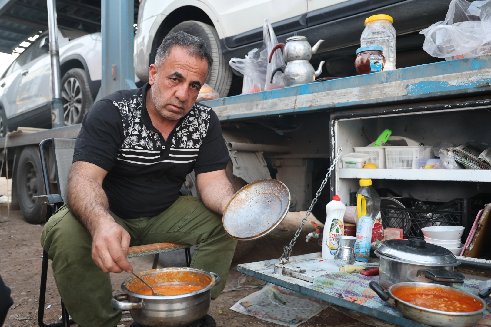 Tır sandıklarında hazırladıkları yemeklerle iftar yaptıklarını ifade eden tır şoförü Mehmet Faruk Uygur, "İftarda; çorba, etli pilav ve kuru fasulye vardı. Toz ve duman içerisinde yemek yapmak zor oluyor. Market ve lokanta yok. Tuvalet, banyo yok ve sosyal hayat yok. Tır sandıklarımızdaki malzemelerle yemek yaparak yetinmeye çalışıyoruz" ifadelerini kullandı.