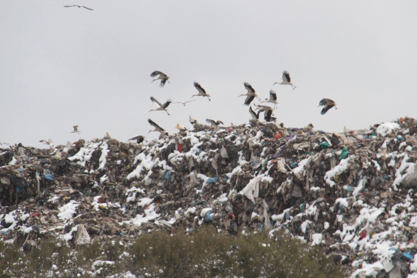 Güzergahları üzerinde yağan kar nedeniyle yiyecek sıkıntısı çeken göç yolundaki leylek sürüleri, Beyşehir ilçe merkezinde iniş yaptıkları alanlarda beslenmeye çalışırken görüldü. Evsel atıklarının taşındığı Şamlar Mahallesi yolu üzerindeki çöp toplama merkezi ve çevresine akın eden onlarca leylek, yoldan geçen sürücüler için de ilginç görüntüler sergiledi. Leyleklerin büyük bölümünün ekili alanlar üzerinde hareketsiz bekledikleri dikkat çekerken, bazılarının da yiyecek arayarak beslenmeye çalıştığı görüldü. Öte yandan, çöp toplama alanı çevresinde günü geçiren leyleklerin çöp toplama araçlarının gün boyu yolunu gözlediği ve diğer türlerle birlikte çöplerdeki yiyecek arayışı dikkatlerden kaçmadı.