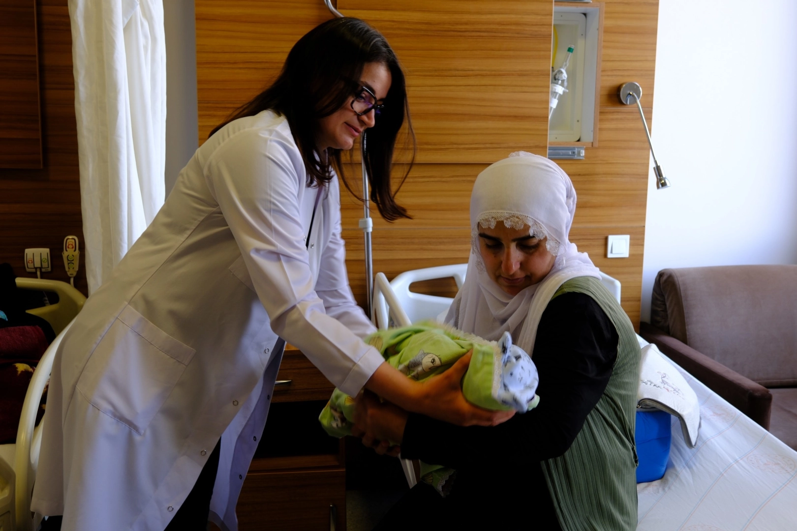 Çatak Devlet Hastanesinin acil servisine başvuran 35 yaşındaki Leyla Kameri, üçüncü bebeğini dünyaya getirdi. Ancak bebeğin anne karnında dışkılaması, plasentadan ayrılması ve doğum sonrası annenin aşırı kanama yaşaması nedeniyle durum acil koduyla değerlendirildi. Çatak Devlet Hastanesi Kadın Hastalıkları ve Doğum Uzmanı Op. Dr. Ayşegül Coşkun, annenin hayati riski nedeniyle vakayı derhal Van'a sevk etti. 112 ambulansıyla, doktor refakatinde gerçekleştirilen transfer sırasında hem anne hem de bebeğin durumu yakından takip edildi. Anne ve bebek, Van Eğitim ve Araştırma Hastanesi Kadın Doğum Acil Ünitesine ulaştığında nöbetçi kadın doğum uzmanı tarafından hızlıca müdahale edildi. Doğum sonrası kanamanın hayati risk oluşturduğu durumlarda uygulanan cerrahi ve medikal müdahalelerle annenin rahmi alınmadan başarılı bir şekilde tedavi edildi. Böylece hem annenin hayatı hem de doğurganlığı korundu. Anne ve bebeğin genel sağlık durumlarının iyi olduğu, kısa süre içinde taburcu edilecekleri bildirildi. Konuya ilişkin açıklama yapan Çatak Devlet Hastanesi Kadın Hastalıkları ve Doğum Uzmanı Op. Dr. Ayşegül Coşkun, hastanın acil servise başvurduğunu, 43 haftalık bebeğin plasentadan ayrıldığını belirtti. Bu nedenle doğum sonrası bebeğe pediatri ekibinin müdahale ettiğini aktaran Dr. Coşkun, "Hastamız doğum sonrası aktif kanama yaşadığı için gerekli ekipmanların temin edilmesinin ardından Van Eğitim ve Araştırma Hastanesine sevk edildi. Transfer sürecinde Van Eğitim ve Araştırma Hastanesinden Dr. Mazlum Gönül hastayı şahsen kabul etti. Kadın doğum acil girişinde bekleyen ekip sayesinde hasta hızla doğumhaneye alındı ve gerekli medikal uygulamalar zaman kaybetmeden başlatıldı. Dr. Mazlum Gönül'ün hızlı müdahalesi sayesinde annenin rahmi korunmuş, hayati tehlikesi büyük ölçüde azaltılmıştır. Yoğun bakım süreci gerekmeksizin serviste takip edilen hastamız kısa sürede toparlandı. Anneyle birlikte 112 ekipleri tarafından sevk edilen bebek ise doğum sonrası takibi için hastanenin yenidoğan yoğun bakım ekibine teslim edildi. Şu anda hem annemiz hem de bebeğimizin genel durumu iyidir. Taburculukları planlanmaktadır" dedi.