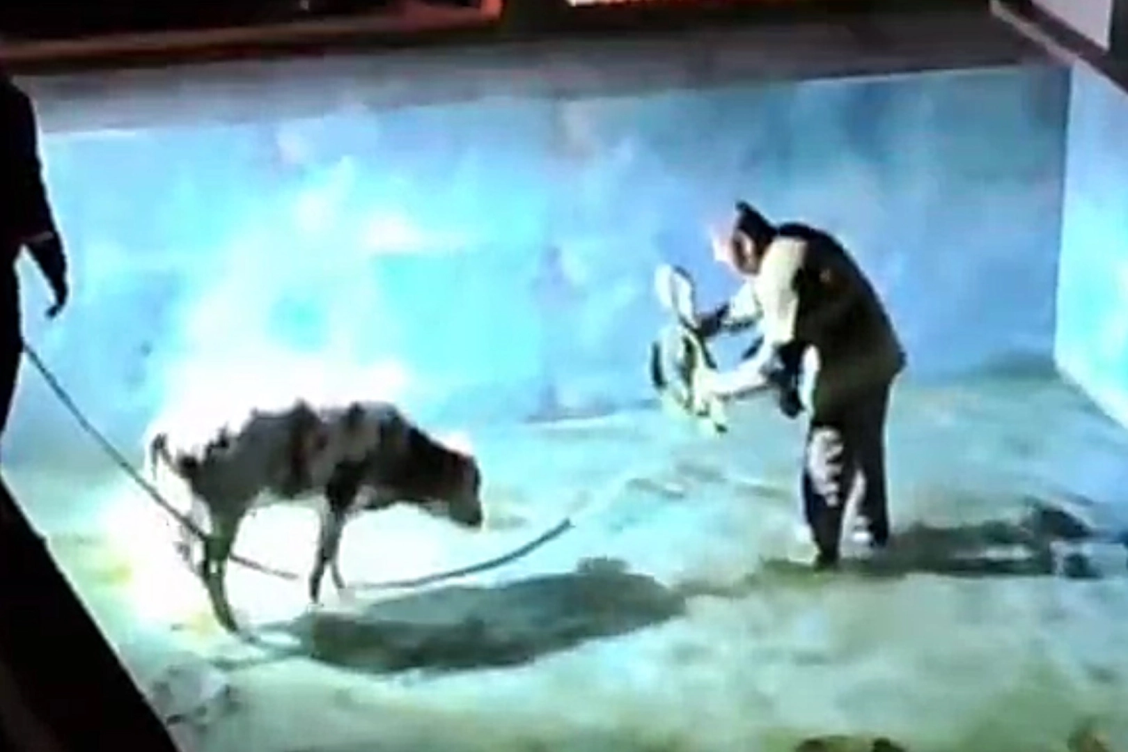 Olay, önceki akşam Çandarlı Mahallesi'nde meydana geldi. İnaşaat halindeki bir villanın boş olan havuzunda buzağı olduğunu farkeden vatandaşlar, durumu itfaiyeye bildirdi. Havuz içerisinde dolanarak çaresiz bekleyen buzağı için itfaye görevlileri bölgeye geldi. Bir görevli havuz içerisinde, diğer ekip üyeleri havuz dışında dakikalarca buzağıyı kurtarmaya çalıştı. İtfaiye erlerine zor anlar yaşatan sevimli buzağı, uzun uğraşlar sonucu gövdesinden yukarı çekilerek havuzdan çıkarıldı. Buzağı daha sonra sahibine teslim edildi.