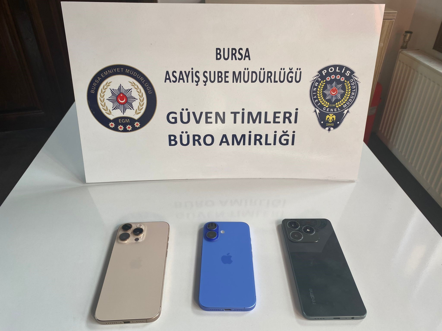 Bursa'da 195 bin lira değerindeki 3 telefonu saniyeler içinde çalan 2 çocuk yakalandı.