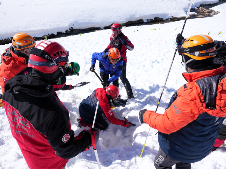 Toplam 113 personelin yer aldığı tatbikatta, senaryo gereği çığ altında kalan üç kazazedeye ulaşmak için ekipler koordineli şekilde çalışma başlattı. Arama kurtarma faaliyetlerinde özel arama cihazları, sondalama teknikleri ve arama kurtarma köpekleri kullanıldı. Çalışmalar sonucunda saat 16.30 itibarıyla çığ altında kalan üç kazazedeye ulaşıldı. Senaryoya göre iki kazazedenin hayatını kaybettiği belirlenirken, bir kazazede ise sağ olarak kurtarıldı. Sağ kazazedenin yeri AFAD’ın canlı arama köpeği tarafından tespit edildi. Kar kütlesi altından çıkarılan kazazedelere olay yerinde ilk müdahale yapıldıktan sonra güvenli bölgeye tahliyeleri gerçekleştirildi.
