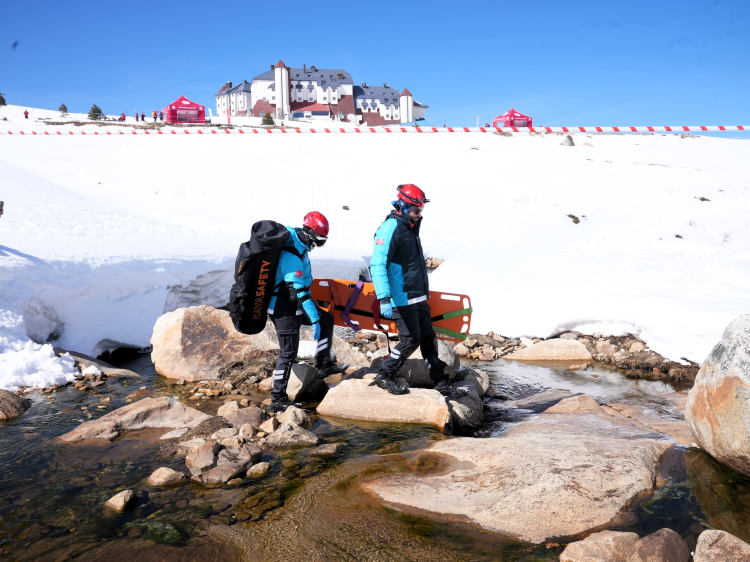 Uludağ’da AFAD koordinasyonunda düzenlenen çığ tatbikatında Osmangazi Belediyesi Arama Kurtarma Ekibi, senaryo gereği çığ altında kalan kazazedelere müdahale etti.