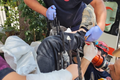 Bahçe duvarından atlarken bacağı demire saplanan çocuğu itfaiye kurtardı