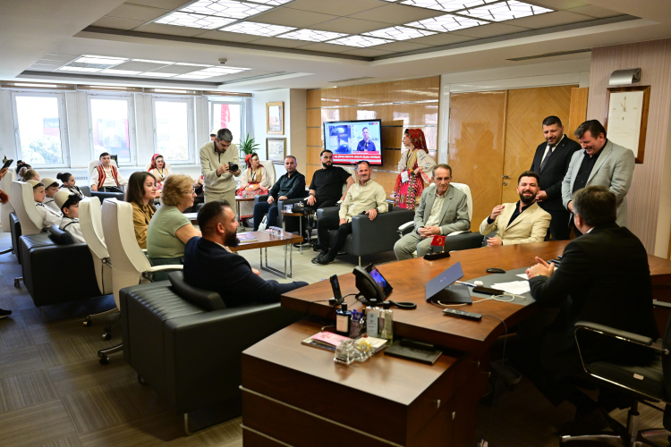 Kuzey Makedonya ve Kosova’dan gelen halk dansları topluluğu üyesi çocuklar, 23 Nisan kutlamaları kapsamında Yıldırım Belediye Başkanı Oktay Yılmaz’ı ziyaret etti. Başkan Yılmaz, 23 Nisan’ın dünya çocuklarına armağan edilmiş barış ve kardeşlik bayramı olduğunu vurguladı.