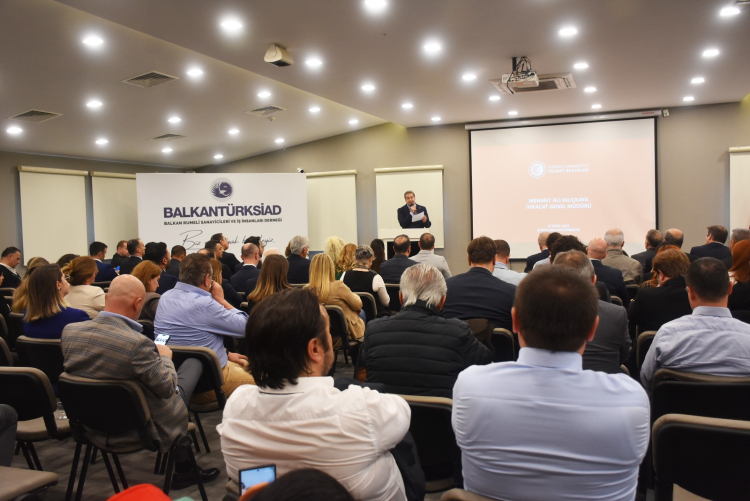BALKANTÜRKSİAD bilgilendirme programları kapsamında Ticaret Bakanlığı İhracat Genel Müdürü Mehmet Ali Kılıçkaya’nın konuşmacı olarak katılımı ile ‘İhracatta yeni hedefler, yeni projeler’ konulu toplantıyı gerçekleştirdi.