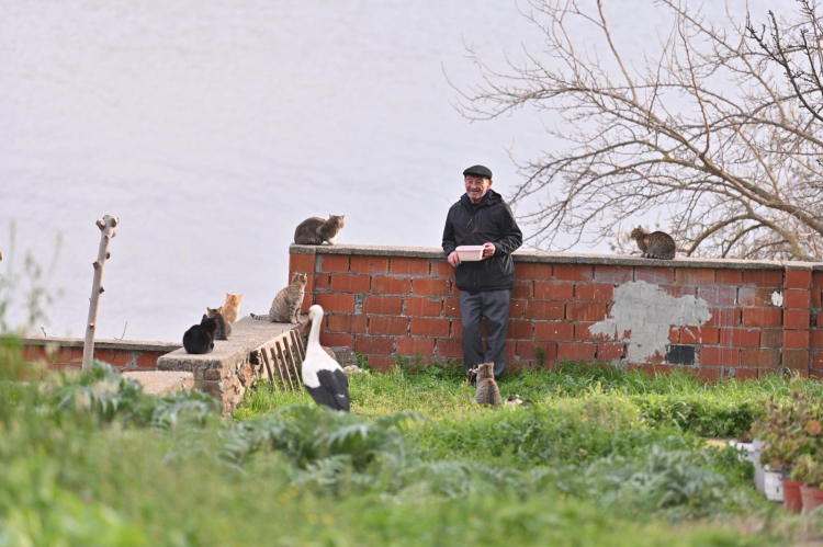 Yaren Leylek'i elleriyle bahçesinde besleyen Adem Yılmaz, 6 ay boyunca birlikte balık avlayacaklarını belirterek mutluluğunu dile getirdi.