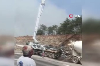 Bursa'nın Harmancık ilçesinde çıkan orman yangınına beton pompasıyla müdahale eden Ali Yalçın, yangınla mücadele ettikleri zorlu anları anlattı.