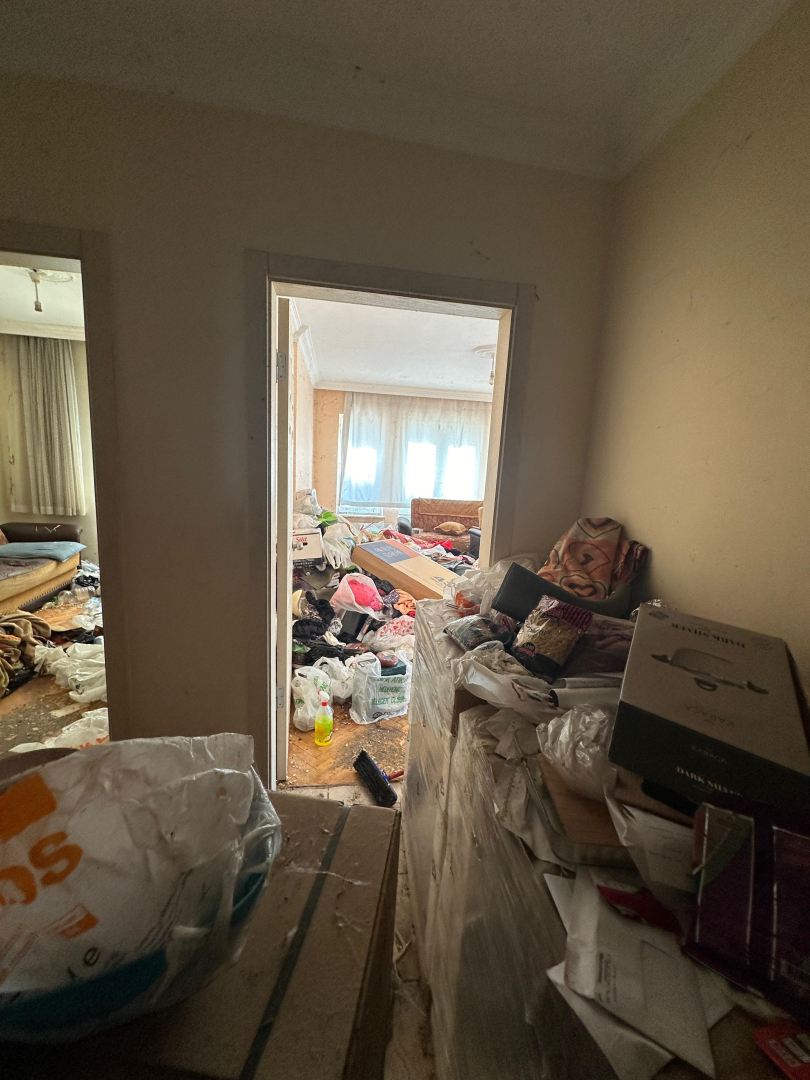 Yüzüncü Mahallesi sakinlerinin şikayetleri ve muhtar Ayşenur Sayan'ın girişimiyle tespit edilen çöp ev, Bursa Cumhuriyet Başsavcılığı'nın kararı doğrultusunda Nilüfer Belediyesi ekipleri tarafından temizlendi. Kolluk kuvvetleri eşliğinde eve giren Nilüfer Belediyesi Temizlik İşleri Müdürlüğü ekipleri, içerideki manzara karşısında hayrete düştü. Ekipler, evin çöp olarak nitelendirilecek eşyalarla doldurulduğunu tespit etti.