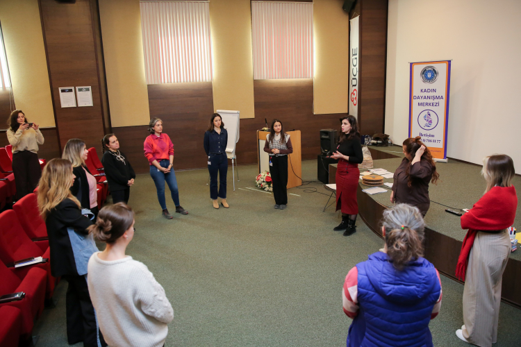 Proje kapsamında, ÜÇGE fabrikasında çalışan kadınların katılımıyla ‘Hak Çemberi Atölyesi’ düzenlendi. Atölyede ‘eşit işe, eşit ücret’ ilkesi, güvenceli çalışma hakkı, ev içi emeğin ve bakım sorumluluklarının görünmezliği gibi başlıklar ele alındı. Yaratıcı drama teknikleri, rol alma ve bedensel ifade yöntemleriyle desteklenen atölye sürecinde katılımcılar, kendi yaşam deneyimlerinden yola çıkarak ekonomik hakları tartışma imkânı buldu.