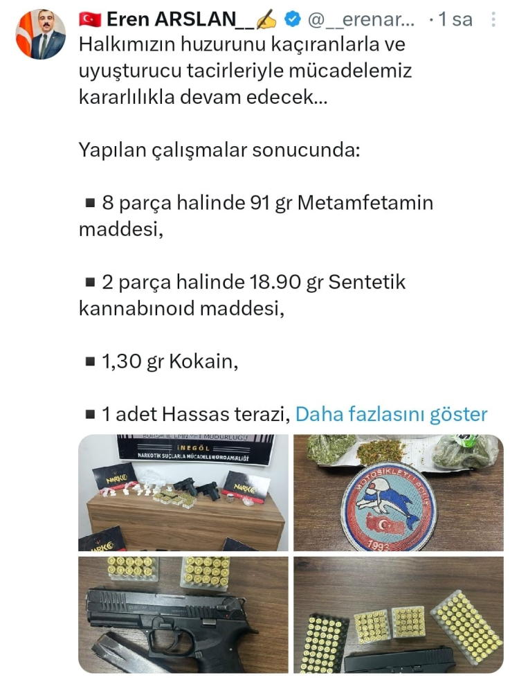 "Halkımızın huzurunu kaçıranlarla ve uyuşturucu tacirleriyle mücadelemiz kararlılıkla devam edecek. Yapılan çalışmalar sonucunda, şüpheli şahıslar adli makamlara teslim edilmiştir. Operasyonları gerçekleştiren kahraman polislerimizi tebrik ediyorum."