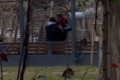 Bursa'da bir kadın parkta tartıştığı erkek arkadaşına defalarca vurdu. O anlar kameraya yansırken, tokat giyen genç, kız arkadaşını sakinleştirmeye çalıştı.
