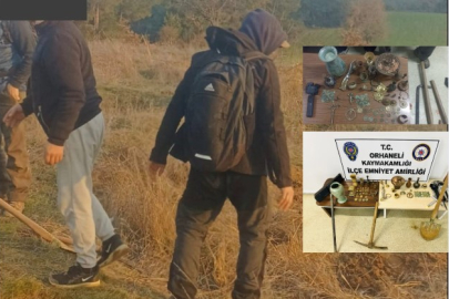 Bursa'nın Orhaneli ilçesi Kurtoğlu mevkiinde tarihi eser kaçakçılığı yaptığı belirlenen 3 kişi, Orhaneli İlçe Emniyet Müdürlüğü ekiplerinin ihbar alması üzerine yakalandı. Cumhuriyet Başsavcılığı'ndan gereken izinle harekete geçen ekipler, düzenledikleri operasyonla şüphelileri suç üstü yakalayarak gözaltına aldı. Şüphelilerin yanlarında bulundurdukları el dedektörü, kazma, kürek, levye, kamera ve alan tarama cihazına el konuldu. Yapılan detaylı aramalar sonucu, tarihi eser olduğu değerlendirilen sikkeler, heykeller ve 50'ye yakın çeşitli obje bulundu. Ele geçirilen malzemeler muhafaza altına alınırken, 3 zanlının ifadeleri alındıktan sonra mahkemeye çıkarılması bekleniyor.