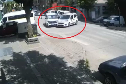 Bursa'nın Osmangazi ilçesinde tali yoldan ana yola dikkatsiz çıkan araç kazaya sebep oldu. Kaza anı bir iş yerinin güvenlik kamerasına yansıdı.