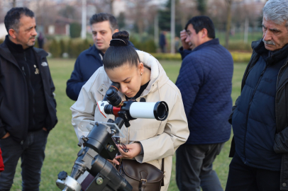 Bursa Büyükşehir Belediyesi tarafından düzenlenen ‘Gökyüzü Gözlem Şenliği'nde Güneş'i, gezegenleri ve Ay'ı profesyonel teleskoplarla gözlemleyen bilim tutkunları, bilim dolu bir akşam yaşadı.