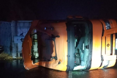 Bursa'da kontrolden çıkan tır devrildi, sürücü yaralandı