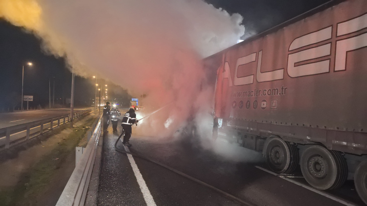 Bursa'nın İnegöl ilçesinde meydana gelen kazada kontrolden çıkan sunta yüklü tır, önündeki tıra çarptı. Tırın alev aldığı kazada 1 kişi hayatını kaybetti, 1 kişi de yaralandı.