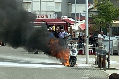 Bursa'nın Gemlik ilçesinde park halindeki motosiklet alev alev yandı.
