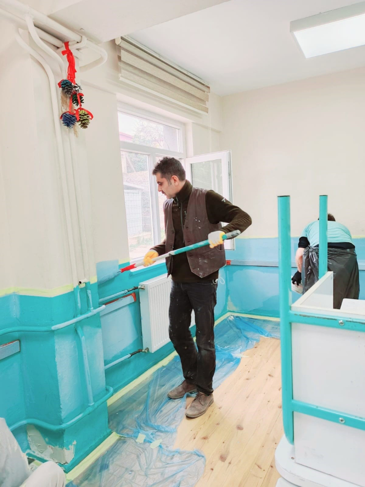 Bursa'nın İznik ilçesinde bir köy okulunun müdürü ve yardımcısı okulu boyadı.