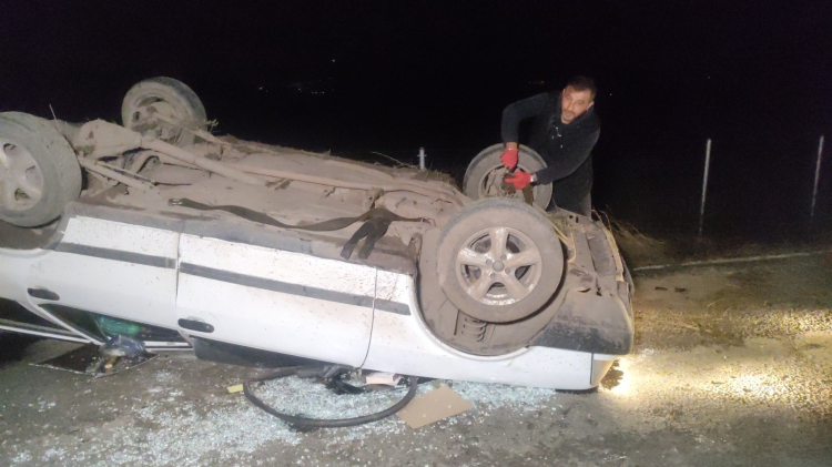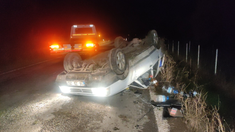 Bursa'nın Orhangazi ilçesine bağlı Akharem Kavşağı yakınlarında meydana gelen trafik kazasında bir otomobil seyir halindeyken kontrolden çıktı. Savrulan otomobil takla atıp ters durdu. Kazada otomobilde bulunan 2 kişi yaralandı.