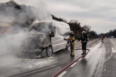 Bursa'da seyir halindeki minibüs alev alev yandı