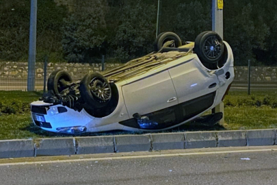 Bursa'nın Mudanya ilçesinde orta refüje çarpıp takla atan otomobildeki 2 kişi yaralandı.