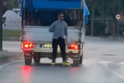 Olay, merkez Nilüfer ilçesinde meydana geldi. Patenle seyahat eden bir genç, önünde seyir halinde olan ilerlemeye devam ederek ilerlemeye başladı. Tehlikeli anlar saniye saniye amatör kameraya yansırken, insanların ışıkta beklediği kamyonetin ilerlemesini de bekledi. Yeşil ışıkta ilerleyen kamyonete tekrar tutunarak seyahat eden gencin tehlikeli anları, amatör kameraya yansıdı.