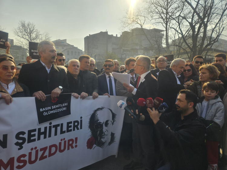 Çağdaş Gazeteciler Derneği Bursa Şubesi Başkanı Yüksel Baysal, burada yaptığı konuşmada basının ifade özgürlüğüne vurgu yaptı.