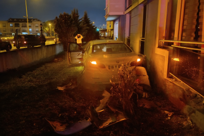 Bursa'da zincirleme kaza! Araç site bahçesine uçtu