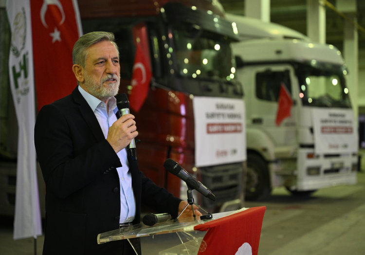 Bursa Uluslararası Fuar Merkezi’nde düzenlenen programa Bursa Valisi Erol Ayyıldız, BTSO Yönetim Kurulu Başkanı İbrahim Burkay, BEKSİAD Başkanı Servet Yılmaz, BUTTİM Başkanı Sadık Şengül ile BTSO Meclis ve Komite Üyeleri katıldı. Gıda, giyim ve hijyen malzemelerinin bulunduğu 24 yardım tırının bölgeye uğurlandığı programda konuşan BTSO Yönetim Kurulu Başkanı İbrahim Burkay, Suriye’de yeni bir dönemin başladığını söyledi. “Suriye’nin ve Suriyeli kardeşlerimizin yeniden ayağa kalkmasında en büyük destekçisi bizler olacağız” diyen Başkan Burkay, Bursa iş dünyasının Suriye’ye insani yardımlarının sürdüğünü vurguladı. İş dünyasının ve sivil toplum kuruluşlarının destekleri ile hazırlanan yardımların kardeşin kardeşe hediyesi olduğunu söyledi. Başkan Burkay, “Önümüzde çetin kış şartları var. Biz sadece bugün değil bundan sonra da Suriyeli kardeşlerimizin yanında olacağız. Cumhurbaşkanı Recep Tayyip Erdoğan’ın liderliğinde, Türkiye’nin Suriye politikasında ne kadar haklı olduğunun ortaya çıktı. Cumhurbaşkanımız Recep Tayyip Erdoğan'ın bu süreçte sabrını ve liderliğini bir kez daha görmüş olduk. Şükürler olsun ki komşumuz Suriye’de kardeşlerimiz özgürlük yolunda çok büyük bir adım attı. Bunun en büyük mimarı Türkiye Cumhuriyeti oldu. Bununla ne kadar gurur duysak az” diye konuştu.