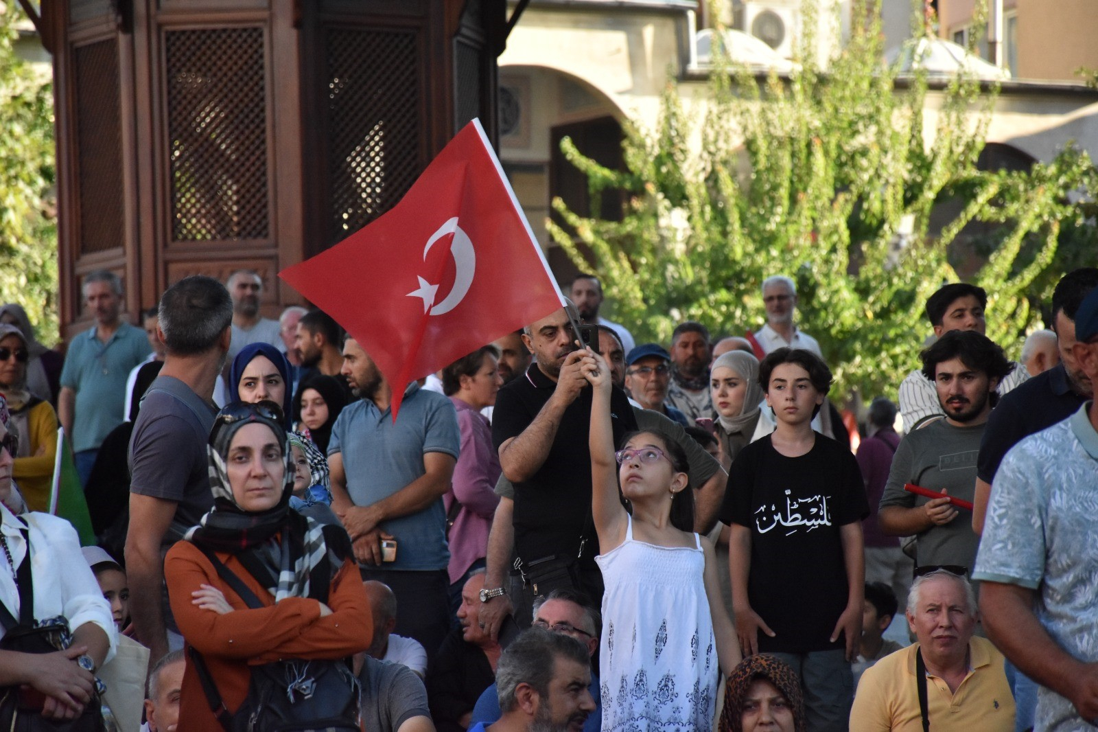 Bursa Gönüllü Kuruluşlar Platformu’nun çağrısıyla binlerce kişi, ellerinde Filistin bayrakları ve pankartlarla Ulu Cami önünde toplandı. İsrail’in Gazze’ye yönelik saldırıları ve Hamas Siyasi Büro Şefi İsmail Haniye’ye düzenlenen suikast protesto edildi. AK Parti Bursa milletvekilleri Osman Mesten, Ahmet Kılıç ve Refik Özen, Yıldırım Belediye Başkanı Oktay Yılmaz, Kestel Belediye Başkanı Ferhat Erol ve Uludağ Üniversitesi Rektörü Prof. Dr. Ferudun Yılmaz’ın da katıldığı protestoda Ulu Cami önünden başlayan yürüyüş, 15 Temmuz Demokrasi Meydanı’nda son buldu. Yürüyüş sonrası İsmail Haniye ve şehitler için Kur’an-ı Kerim okunarak, dualar edildi.