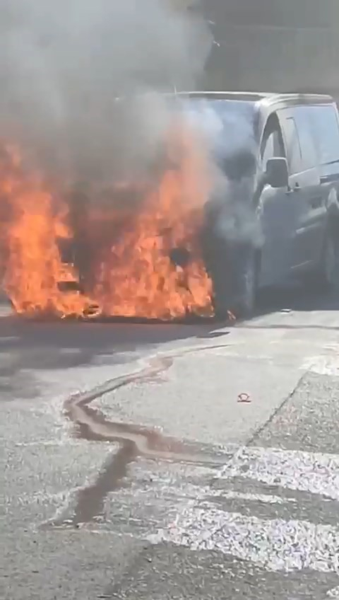 Bursa'da yolun ortasında alevlere teslim olan VIP minibüs, cayır cayır yandı.