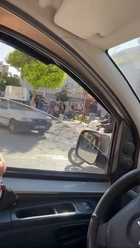 Kavga anı çevredekilerin araya girmesiyle son buldu. O anlar cep telefonu kamerasına yansıdı.