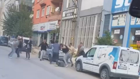 Kısa sürede büyüyen tartışmaya tarafların yakınları da dahil olunca tekme ve yumruklar havada uçuştu. O anlar güvenlik kamerasına anbean yansırken, tarafları çevredekiler güçlükle ayırdı.