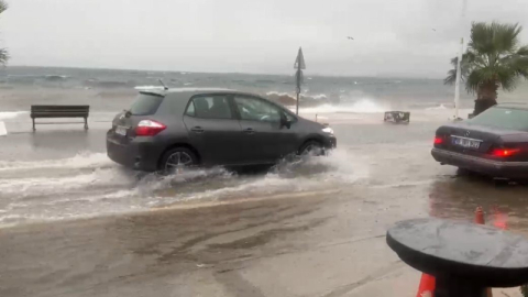 Meteoroloji Genel Müdürlüğü'nün açıklamalarının ardından dün gece itibarıyla etkisini yeniden gösteren şiddetli rüzgar, Bursa'da önüne geleni savurdu. Binalar uçtu, ağaçlar devrildi, sahil şeridi göle döndü. Fırtınanın vurduğu Gemlik, Kurşunlu Mahallesi'nde taşan deniz caddeleri göle çevirirken, bazı sürücüler araçlarıyla ilerlemekte güçlük yaşadı. O anlar kameraya yansırken, Bursa Valiliği vatandaşlara dikkatli olması konusunda uyarılarda bulundu.