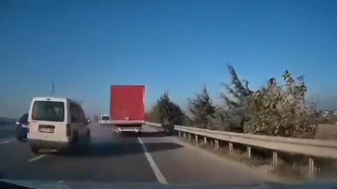 Bursa’da otobanda seyir halindeyken takip mesafesini ihlal eden ticari araç, önündeki araçlara çarptı. Kaza anı kameraya yansırken, arıza yapan kamyon sebebiyle yolun daraltılmış olması da dikkat çekti.