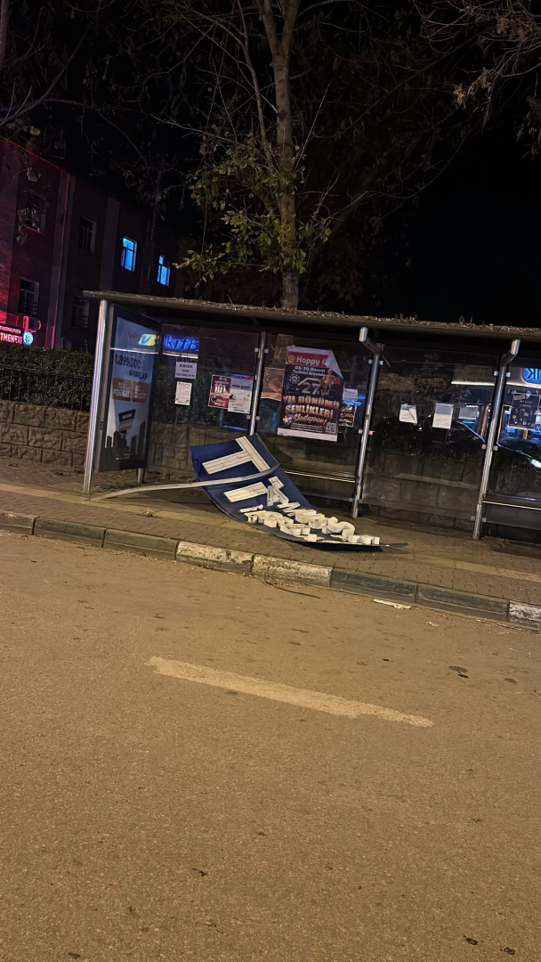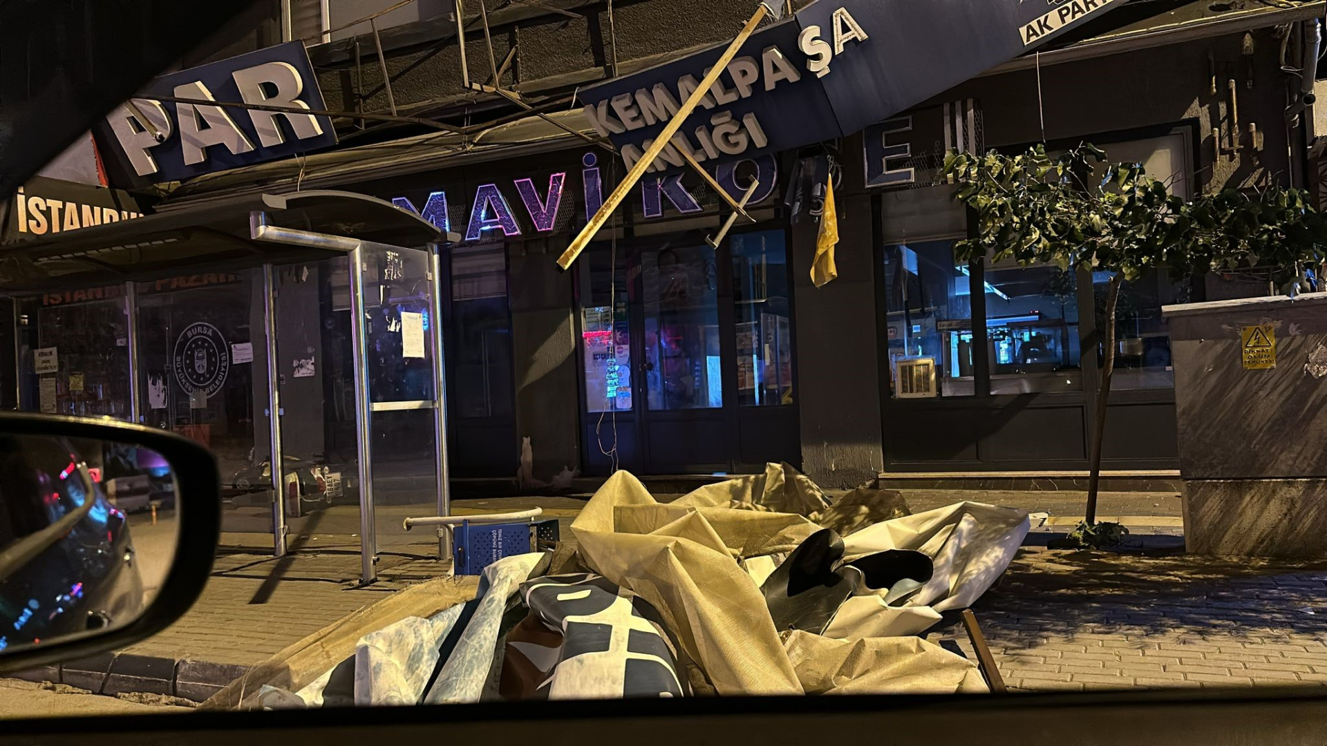 Bursa'nın Mustafakemalpaşa ilçesinde gece yarısı etkili olan şiddetli fırtına, ilçede hayatı olumsuz etkiledi. Fırtına nedeniyle AK Parti İlçe Başkanlığı binasının tabelası yola savruldu.