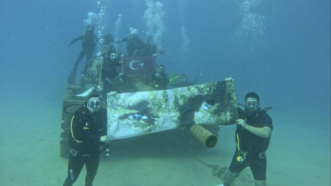 Türkiye Cumhuriyeti’nin kurucusu Mustafa Kemal Atatürk'ün ölümünün 86. yıl dönümünde denizin altında Türk bayrağı ve Atatürk posteri açtılar.