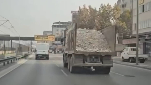 Bursa’da moloz taşıyan kamyon, tedbir almadan dakikalarca ilerledi. Tehlike saçan sürücü kameraya yansıdı.