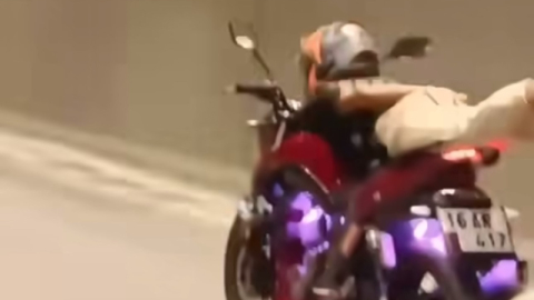 Edinilen bilgiye göre, merkez Yıldırım ilçesi 152 Evler Mahallesi Ankara Yolu Caddesi üzerinde motosiklet sürücüsü motosikletin üzerine uzanarak seyretmeye başladı. Bir süre bu şekilde giden motosiklet sürücüsü diğer sürücülerin yüreklerini ağza getirirken bir sürücü o anları kayda aldı. Motosiklet sürücüsü daha sonra ara sokaklara girerek gözden kayboldu.