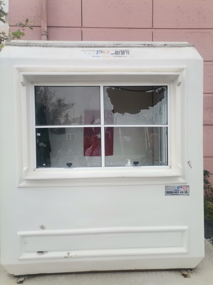 Bursa'da kimliği belirsiz şüpheli veya şüpheliler, Yüksek İhtisas Eğitim ve Araştırma Hastanesi'ne ait güvenlik kulübesi ve ambulansın camlarını kırarak zarar verdi.