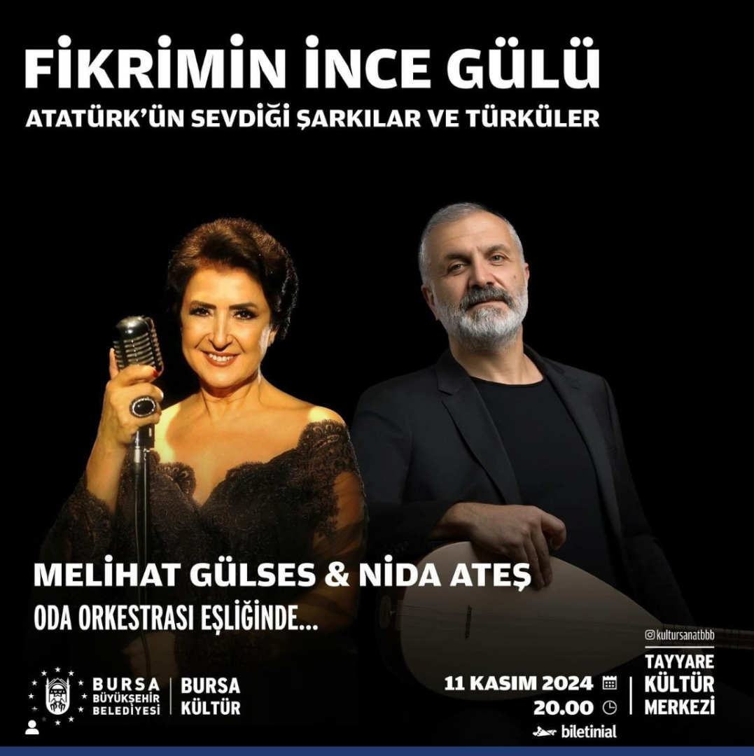 Ayrıca Orkestra Şube Müdürlüğü tarafından 10 Kasım Pazar günü Saat 20.30’da Tayyare Kültür Merkezi’nde ‘Ölümsüzlüğe Ezgiler-Bir Fırtına Tuttu Bizi’ adlı konser düzenlenecek. Etkinlikler kapsamında 11 Kasım Pazartesi günü Saat 20.00’da Tayyare Kültür Merkezi’nde ‘Fikrimin İnce Gülü’ adlı konser düzenlenecek.