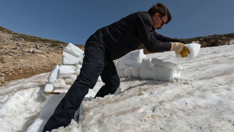 Yaz ve kış aylarında çıktıkları Uludağ'da renkli görüntüleri kayda alan dağcılar, kimi zaman ise izleyenlerin yüreklerini ağzına getirdi. Sertleşen kar tabakasını testere ile küçük tuğlalar haline getiren dağcılar, kendilerine iglo dinlenme köşesi yaptı.