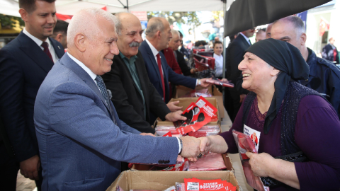 Orhangazi Parkı'nda 29 Ekim Cumhuriyet Bayramı için Bursalılara Atatürk posteri dağıtan Başkan Bozbey, “Bursa'nın 17 ilçesinde Cumhuriyet Bayramı hep birlikte, alanlarda kutlanacak. Bursalıları, 29 Ekim'de Cumhuriyet Bayramı'nı coşkuyla kutlamaya davet ediyorum” dedi.