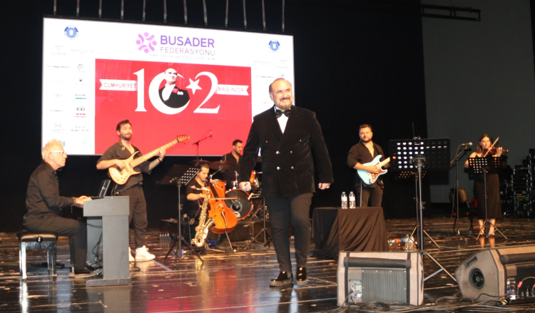 Plaket töreninin ardından Hakan Aysev, Türk ve dünya müziklerinin en güzel örneklerini seslendirdiği konseri ile katılımcılara Cumhuriyet coşkusunu yaşattı. Gecenin finalinde BUSADER Federasyonu Başkanı Zerrin Özgüle, Hakan Aysev’e çiçek takdiminde bulundu.