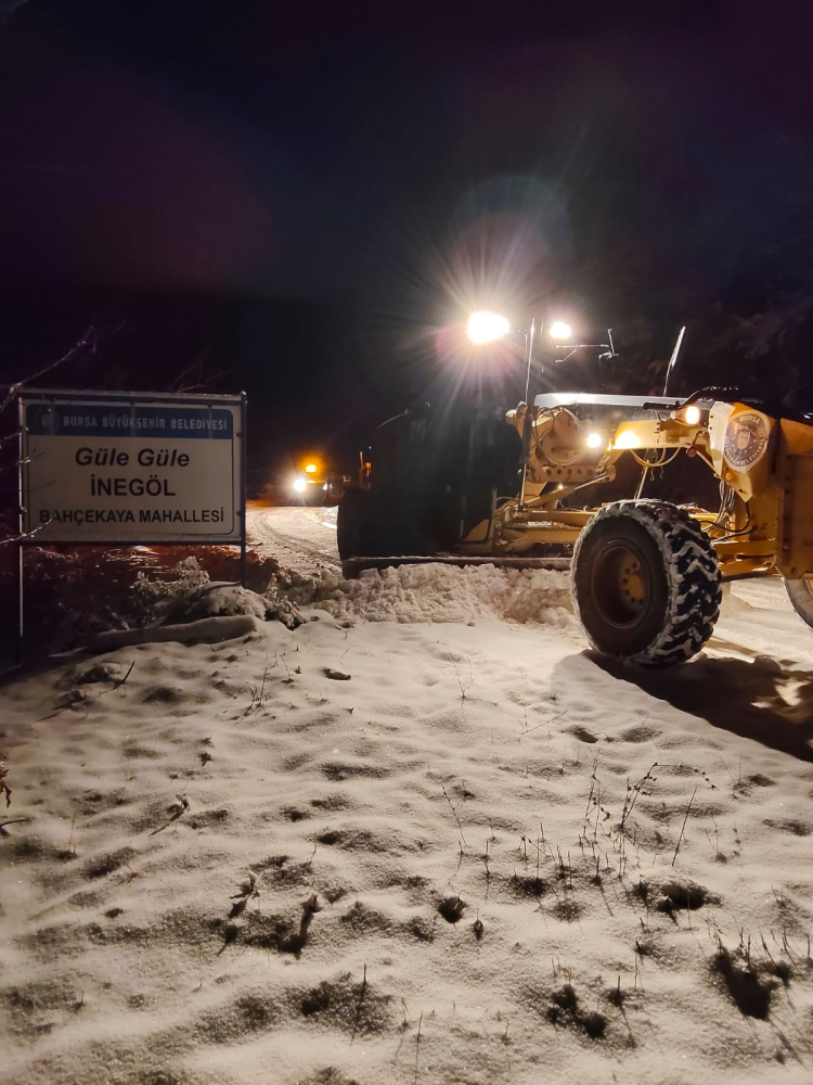 Kent genelinde iki vardiya halinde görev alan toplam 1021 personel, 203 iş makinesi ve kar küreme aracıyla 145 mahalle yolunu trafiğe açtı. Kar yağışının etkili olduğu Keles’te 23, İnegöl’de 22, Büyükorhan’da 21, Kestel ve Osmangazi’de 14, Orhaneli’de 13, Mustafakemalpaşa ve İznik’te 10, Harmancık 7, Yıldırım, Gemlik ve Gürsu’da 3, Yenişehir ve Orhangazi’de ise birer mahallenin yolu ulaşıma açıldı. Kent genelinde kapalı mahalle yolu bulunmazken, ekipler yağışın devam ettiği bölgelerdeki çalışmalarını kesintisiz sürdürüyor.