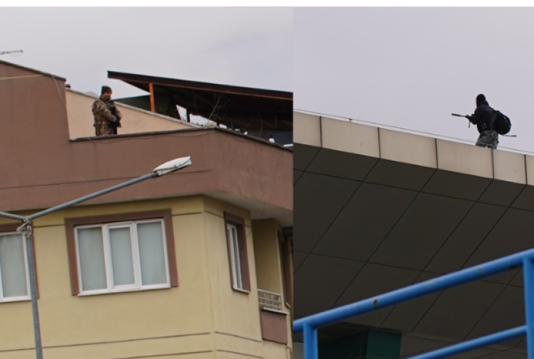 Tofaş Spor Salonu çatısı ve çevresinde bulunan yüksek binaların çatısında keskin nişancı özel kuvvetler mensupları yer aldı.