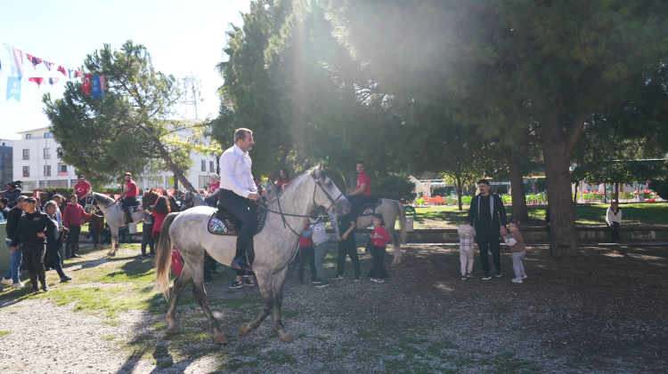 Atlı kortejdeki geçittin ardından meydanda oluşturulan alanda Başkan Işık at bindi. Vatandaşların yoğun ilgi gösterdiği Cumhuriyet Bayramı kutlamaları sosyal medyada büyük ilgi çekti.