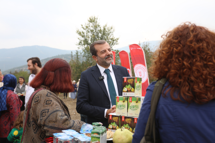 Ağırlığı bir kilogramı bulan Türkiye’nin en büyük deveci armudu üreticisi olan Bursa’nın Gürsu ilçesinde bu yılki hasat anlamlı bir mesajla sonlandı. “Gürsu’da eller sadece armut için kalkar; kadına el kalkmaz. Bizim elimiz armut toplar!” diyerek iş dünyasından kadınlar ile köy kadınlarını bir araya getiren Gürsu Belediye Başkanı Mustafa Işık, Gürsu’nun Bursa’nın kadına yönelik şiddet olaylarında en düşük oranlara sahip ilçesi olduğuna dikkat çekti. Başkan Işık, son 5 yılda ilçede hiçbir olumsuz olay yaşanmadığını vurguladı.